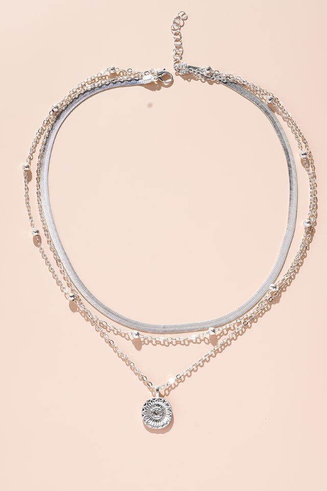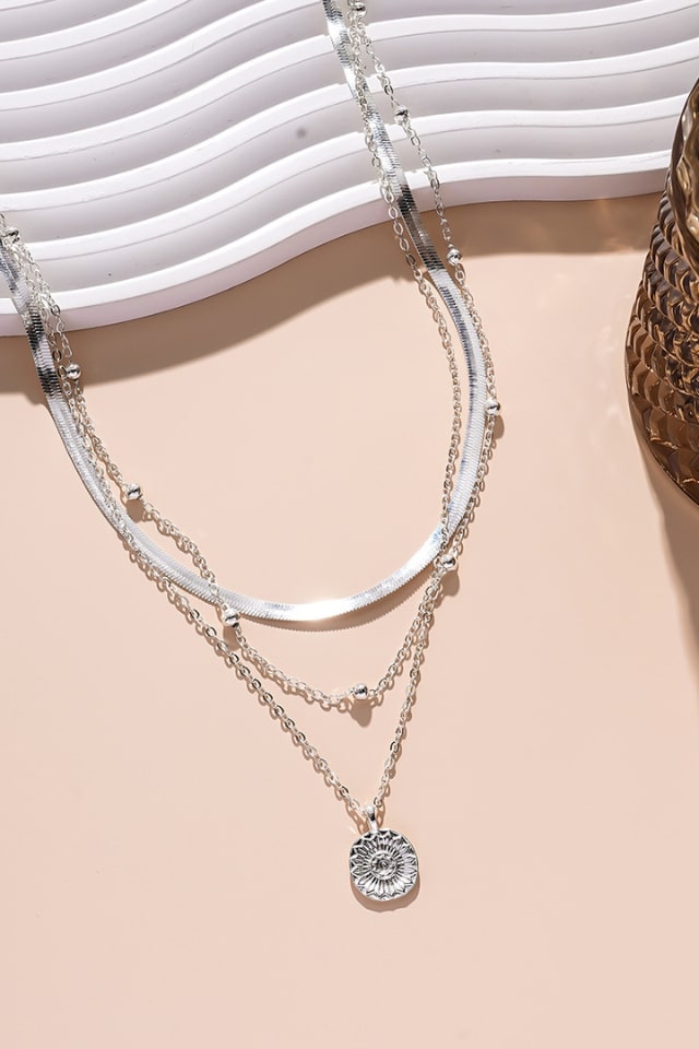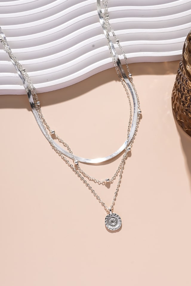 Elevate your style with this Silver Multi Layer Chain Alloy Lotus Necklace, expertly crafted for a sophisticated look. Featuring multiple delicate chains layered seamlessly, it highlights a lotus pendant symbolizing purity and elegance. Made from durable alloy with a polished silver finish, this necklace offers lasting shine and versatility, perfect for both everyday wear and special occasions. Its intricate design adds depth and dimension, making it a refined accessory for those who appreciate detailed craftsmanship.