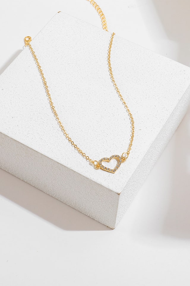 Elevate your accessory collection with this Vintage Style Heart Rhinestones Chain Necklace. Expertly crafted, it features a delicate heart pendant adorned with sparkling rhinestones, suspended from a finely linked chain. This necklace combines timeless vintage charm with subtle glamour, making it an ideal piece for both everyday wear and special occasions. Its refined design ensures versatility, adding a touch of elegance to any outfit.