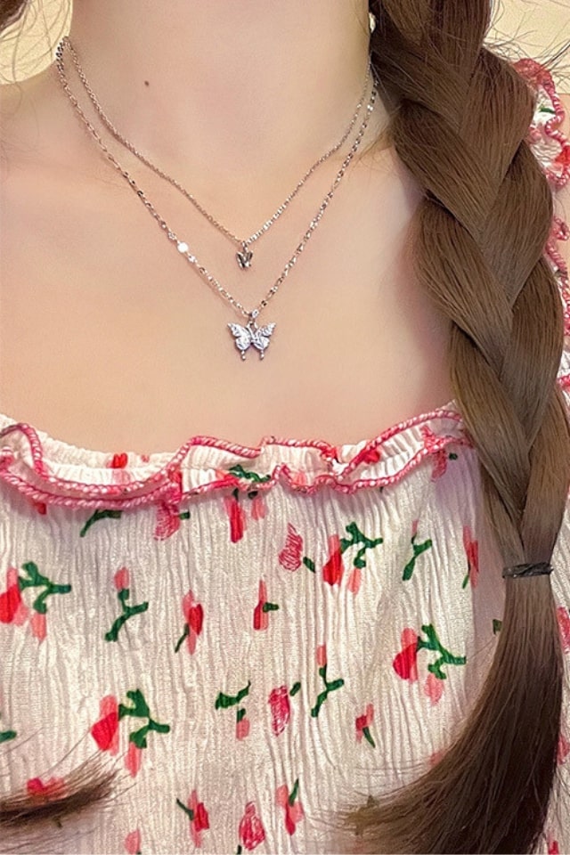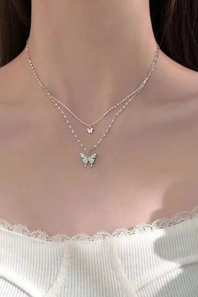 This Elegant Style Butterfly Necklace features a refined blend of silver and gold plating, accented with sparkling rhinestones that enhance its delicate design. Expertly crafted, it offers a sophisticated accessory that complements both casual and formal attire, adding a touch of timeless elegance to your collection.