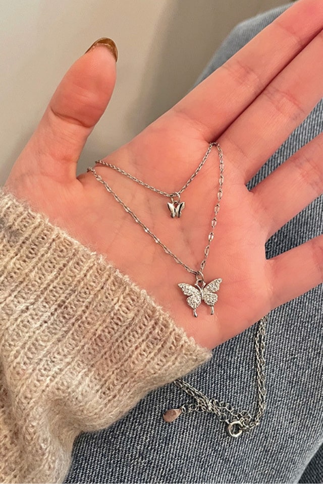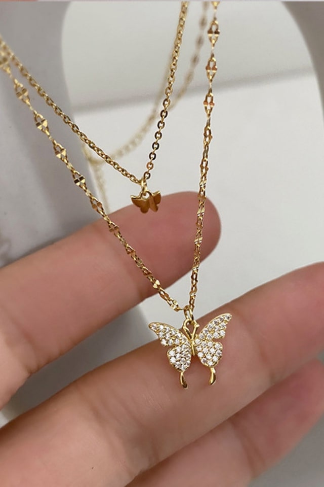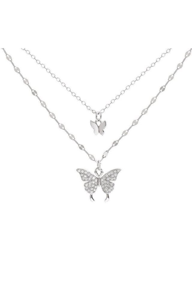 Women’s Butterfly Rhinestone Necklace – Silver & Gold Plating | THRILL