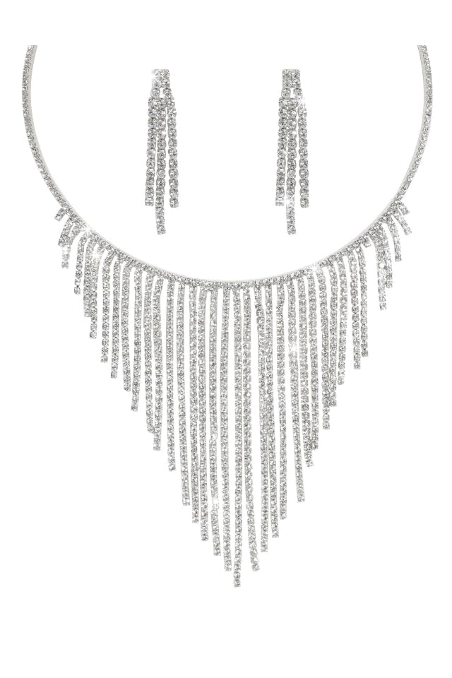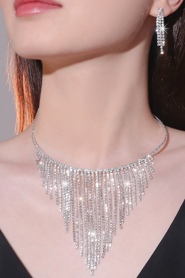 Women’s Silver Tassel Jewelry Set – Rhinestone Inlay Design | THRILL