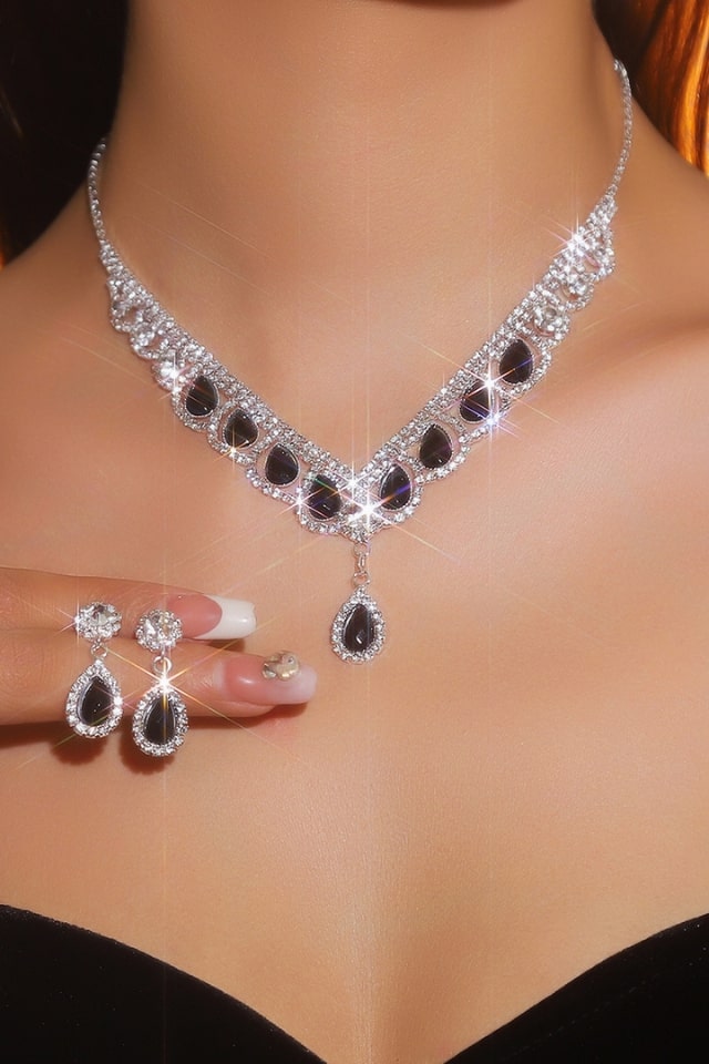 This Elegant Black Droplets Rhinestone Jewelry Set features meticulously crafted black droplets accented with sparkling rhinestones, offering a refined and sophisticated look. Perfect for formal occasions, it enhances your ensemble with a subtle yet striking shimmer, combining classic elegance with contemporary design. Ideal for those seeking a polished accessory that complements a variety of styles.